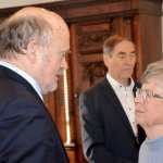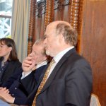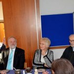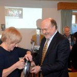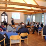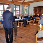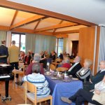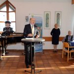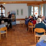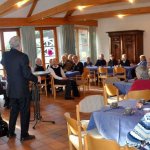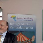 Dieses Geschehen bewegt natürlich auch die Kirchen. Da sie vor allem unter den Ärmsten arbeiten, betrifft sie die weiter zunehmende Not unmittelbar. Hans Zeller berichtete aber auch von Projekten, mit denen vor allem der Not auf dem Land begegnet werden soll: Nutzung der Sonnenenergie für Beleuchtung und Kochen, brennstoffarme, rauchvermeidende Öfen, Zisternen, Tröpfchenbewässerung etc. Er informierte auch über die Arbeit der Stiftung unter den Jugendlichen, die für viele die einzige Chance zur berufserschließenden Ausbildung darstellt. Hans Zeller hatte einen kurzen Film aus El Salvador mitgebracht, in dem sich die StipendiatInnen der Stiftung vorstellen und ihren Dank zum Ausdruck bringen. Er bat die Versammelten, in ihrem Engagement für die Stiftung nicht nachzulassen. Sie bedeutet für 38 junge Menschen einen Hoffnungsschimmer in äußerst prekären Umständen. Diesem Aufruf schloss sich auch der Beiratsvorsitzende Dr. Jürgen Löschberger an.