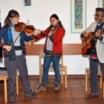 Kein Wunder, dass dieses Fest mit seinen 45 Besuchern von Musik und Gesang geprägt war. Julio mit der Gitarre wurde dabei von seiner Frau Gerti, einer Österreicherin, und seiner Tochter Sarah Celeste mit Geige, Flöte und fröhlichen Gesang unterstützt. Manche der Lieder wurden bereits in unserer Revista veröffentlicht – z.B. das Lied „El viento se escurre“ („Der Wind des Heiligen Geists dringt ein“) auf S. 16 der Revista 18.