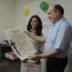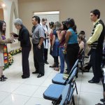 Die übrigen StipendiatInnen aus der Hauptstadt San Salvador berichteten - von diesem Ereignis sichtlich betroffen - über ihre gegenwärtige Situation. In der Stadt haben sie es näher zur Uni oder zu Ausbildungsstellen und kommen mit ihrem Studium gut voran. Stolz war die Stipendiatin Xochil über ihr Lizentiat in Psychologie. Sie zeigte uns ihre respektable Urkunde mit Siegel und feierlich gestalteten Unterschriften und hofft sehr darauf, dass sie nun in staatlichen Einrichtungen der Familien- und Jugendhilfe eine Stelle finden kann.